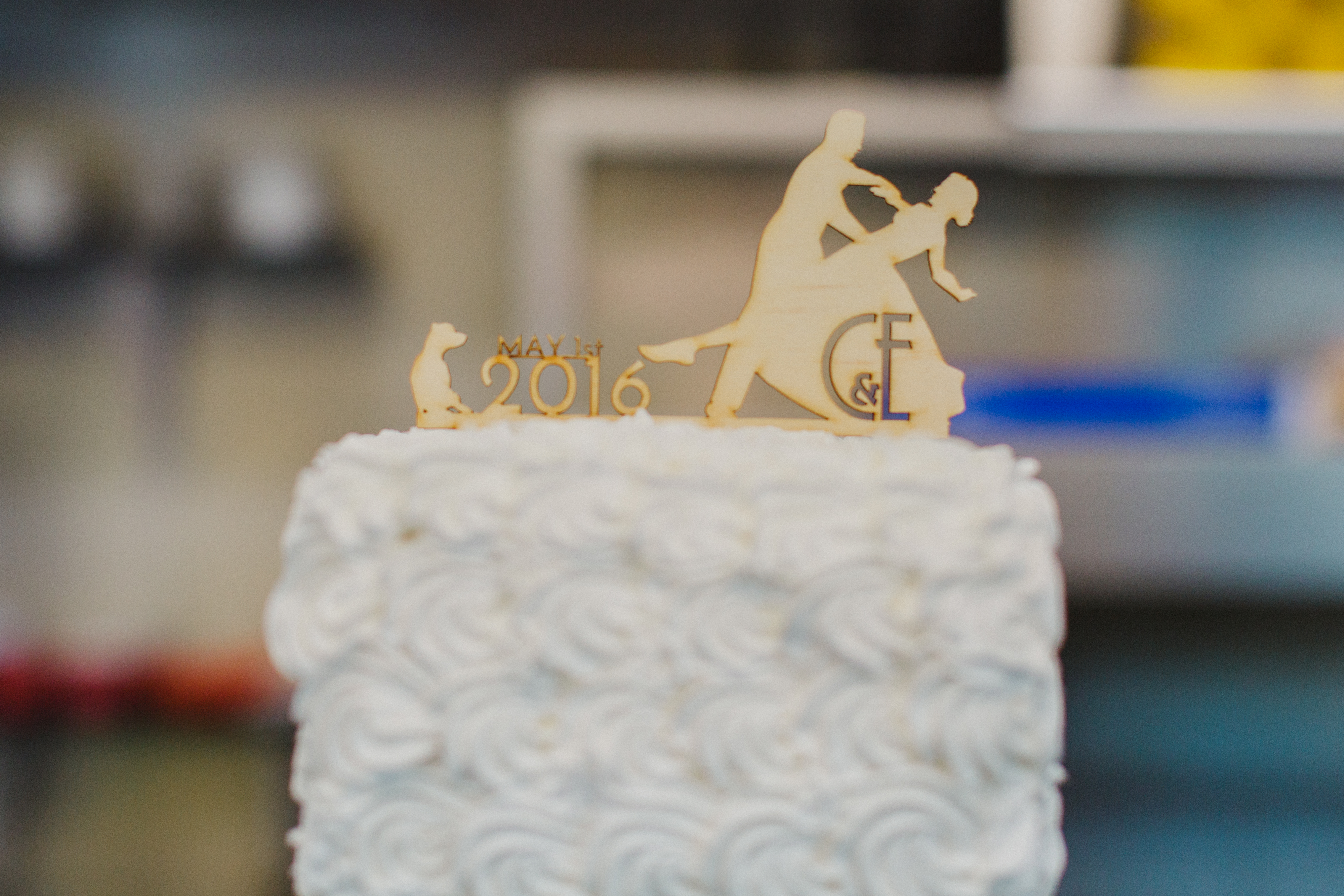 The cake flavor was chosen before Daniel ever looked at rings. I love the vanilla cake from Publix with Strawberries between the layers and buttercream icing. It is the perfect spring cake. We chose a square tiered cake with Endless Rose styled white buttercream. I wanted a custom keepsake cake topper, so again I searched Etsy to find some special; the Laser Art Studio in Alvaton, Kentucky (where the mother-of-the-bride grew up). Laser Art Studio made our cake topper and the centerpiece for our flowers. The anniversary layer of our cake awaits our one year anniversary in the bride's parents freezer (they have a generator for security). The cake topper and centerpiece will hold a special places in our home for many years to come.